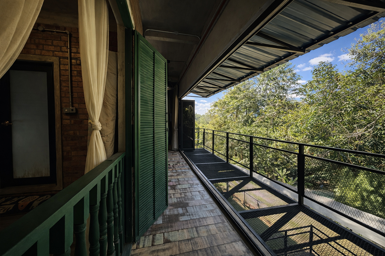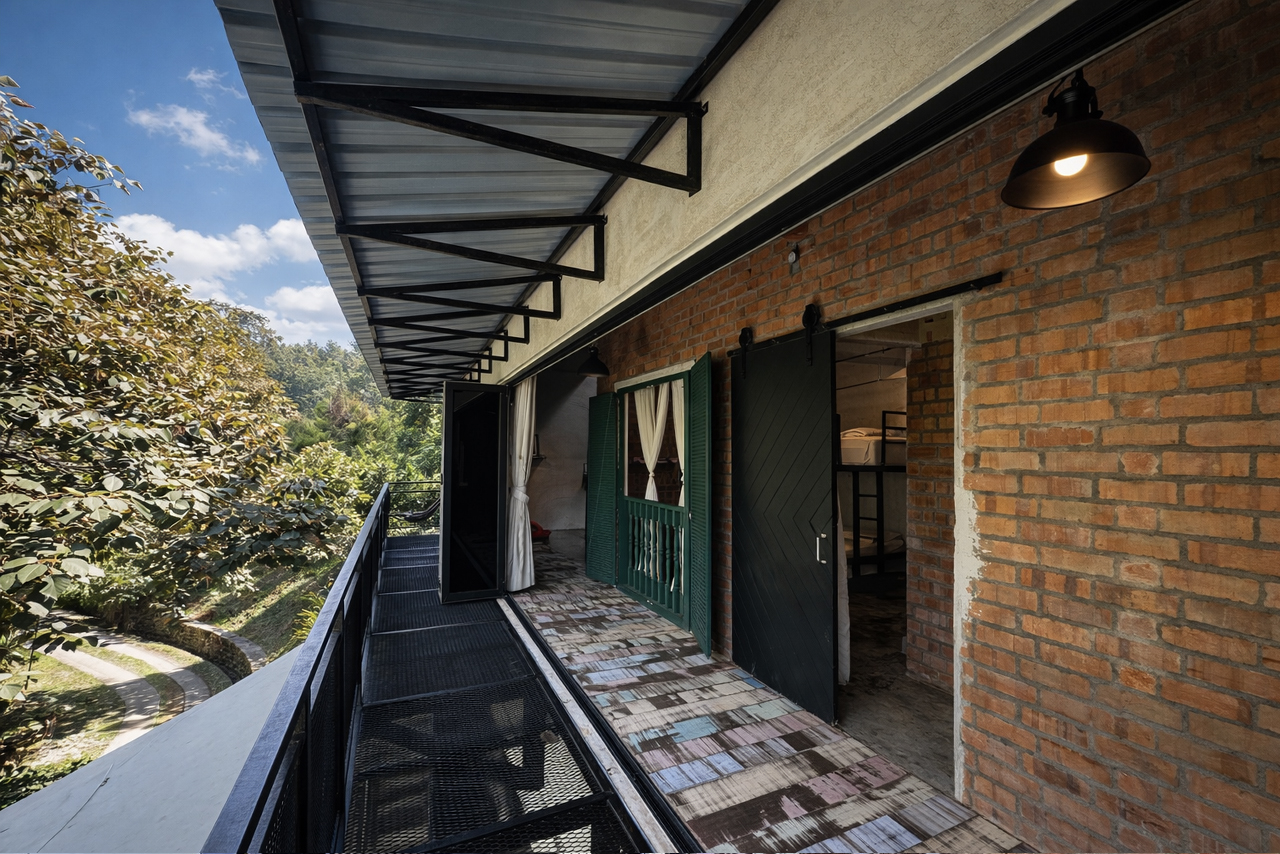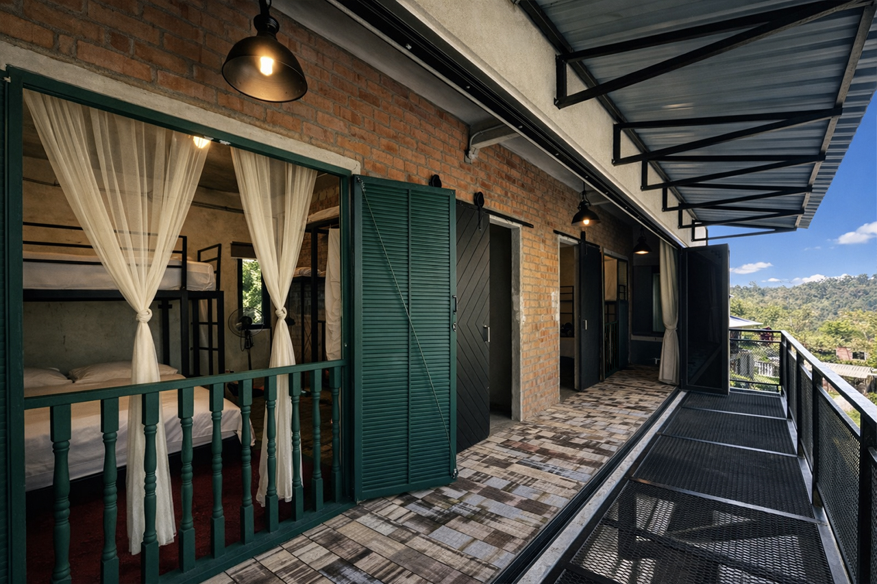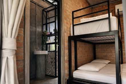 A similarly styled 1,530sq ft double -storey villa with 3 bedrooms. Each room is equipped with a double decker bed – queen bottom and single on top. Rooms also have a single, spare mattress. Sleeps 12 adults comfortably. All bedrooms have attached bath, air-conditioning and stand fans.
