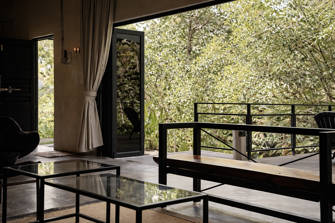Large living – dining space. Designated private BBQ area. Fahima’s location to the left of Farina makes it suited for families with little kids, as a short walk up next to it is the playground. Guests also get to enjoy views of mature trees and the jungle pool.