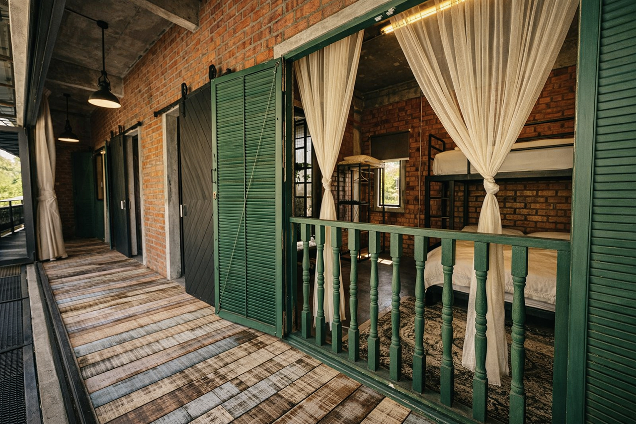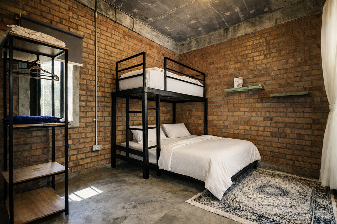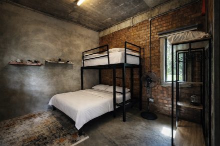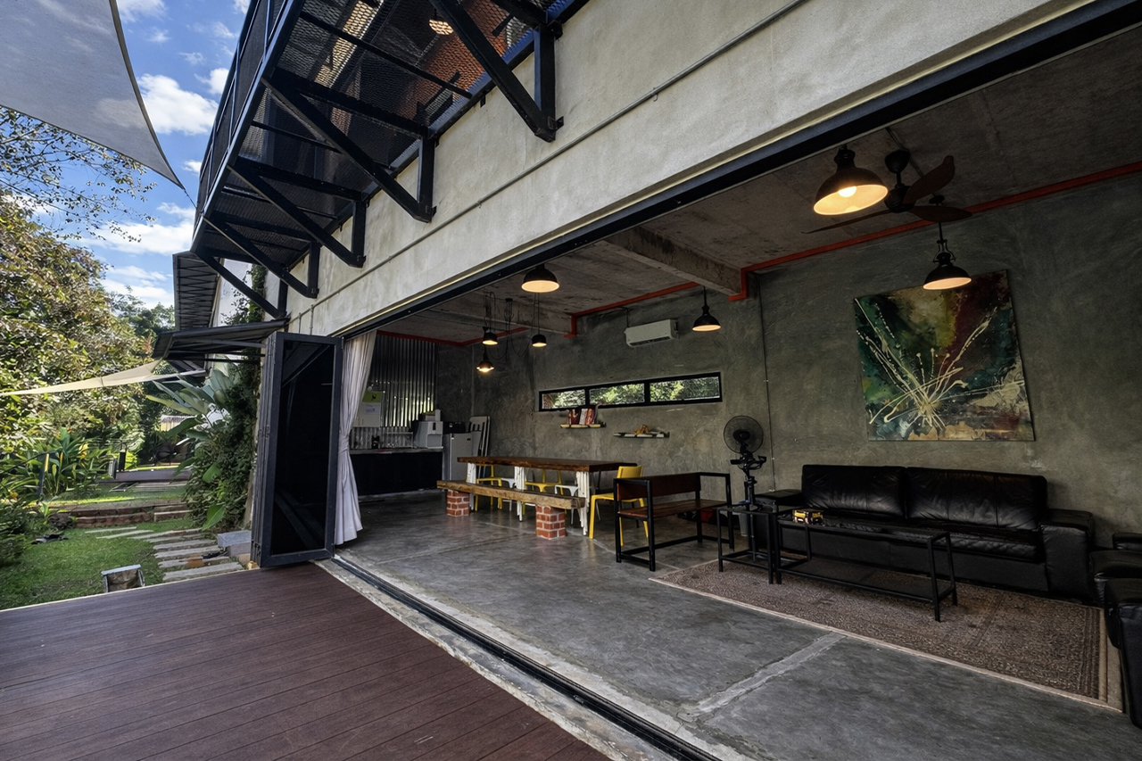 A 1,530 sq ft double-storey villa with 3 bedrooms.  Each room is equipped with a double decker bed – queen bottom and single on top.  Rooms also have a single, spare mattress.  Sleeps 12 adults comfortably.  All bedrooms have attached bath, air-conditioning and stand fans.